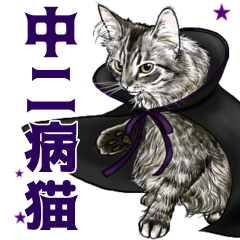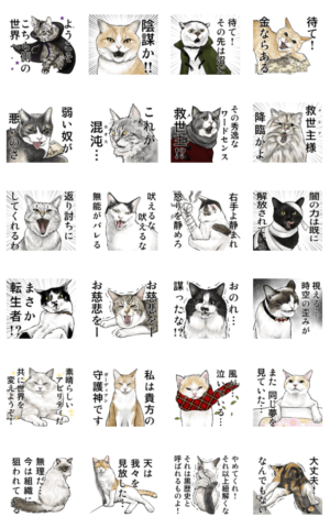 いつまでも中二の心を忘れない大人のための猫スタンプ。だって、アニメイラストだと年齢的にね…って。大丈夫!猫だったらみんな許してくれるから!無論お子様も使えます。