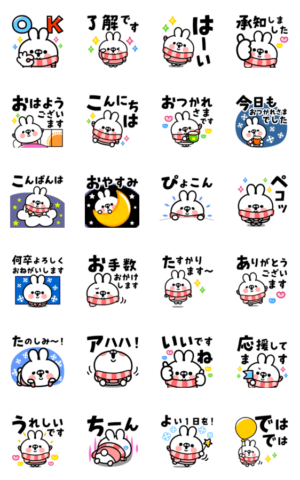 背景が動くよ~!かわいいウサギちゃんの冬スタンプ。敬語メインです♪前田ムサシ より発売