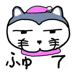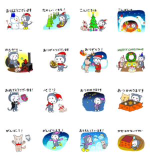 ふじびたい猫のふじおくん7、のんびりゆるい猫の日常スタンプ。冬のイベントが楽しみです。ushidon より発売