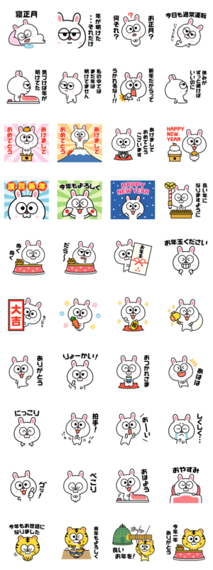 お疲れ気味のお正月(2023年はうさぎ年) スタンプ画像一覧