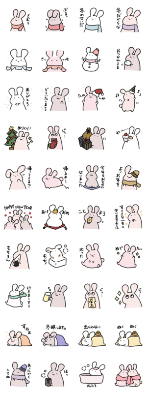 ゆるくてお茶目な、うさぎさんの仲間たちのスタンプ第5弾、冬のスタンプです。ao より発売