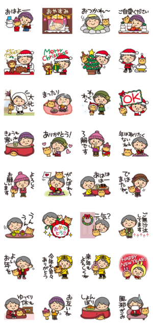 優しくてキュートな「ばぁば」の冬スタンプです。Reiko より発売