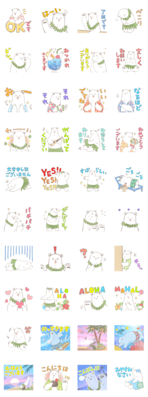 カネフラダンスのシロクマくん敬語inハワイ スタンプ画像一覧