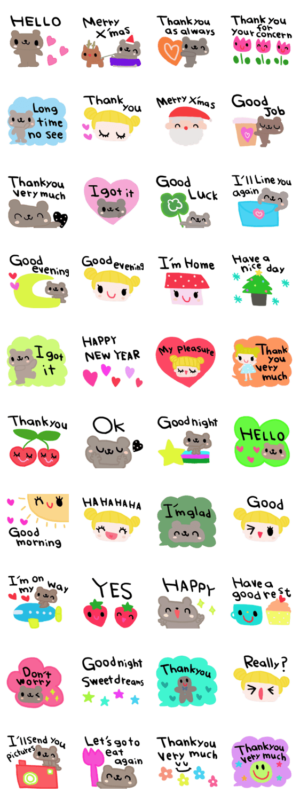 シンプルな日常会話スタンプです。英語スタンプnenerin より発売