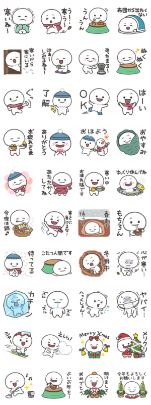 可愛いまんまる君の冬スタンプです。寒い日に一緒に寒がってくれる優しいスタンプです