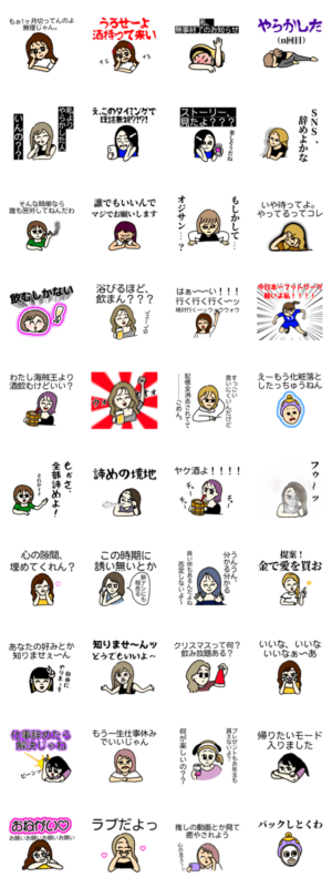 悩める大人ギャルの日常スタンプです。かわいい/シンプル/女の子/飲み/酒/アル中/年末年始/社会人/クリスマス/煽り/独身/恋愛バブルガム より発売