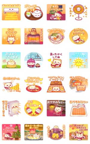 寒い季節にぴったりです。見ているだけであったかぽかぽか。なるほどこういうテーマでまとまったスタンプもありなんだなとちょっと感心しました。