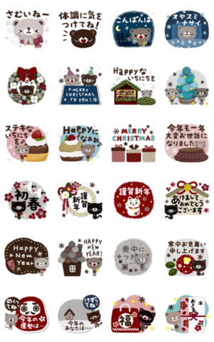 クリスマスお正月とこれからに最適なスタンプ。くまさん可愛い~