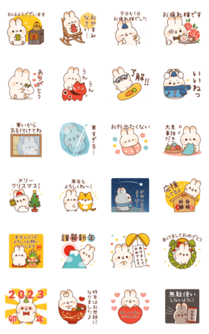 いつでも傍で寄り添って癒しをくれるうさぎさんのスタンプ第五段♪年賀やクリスマス、冬の挨拶も入った使いやすいセットです!(お正月、卯年、飛び出す、年末年始)