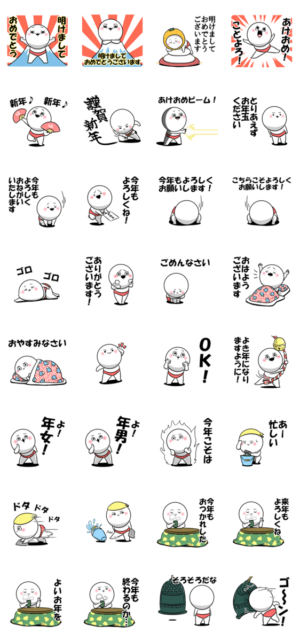 名前スタンプに続き,日常白丸スタンプ第83弾,敬語,年末年始,新年,正月,お年玉,年越,大晦日,元旦,元日,三が日,年賀状,餅,新年挨拶,家族,友達,恋人,同僚,他人にも