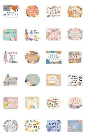 大人の女性が使いやすいおしゃれなお花と小鳥の年末年始の挨拶スタンプです。優しい北欧タッチの雰囲気で誰にでも使いやすいデザインと丁寧なメッセージを詰め込みました。※2023/1/3(火)23:59までに購入すると特典「LINEおみくじ」がもらえます。NAKAYUKA より発売