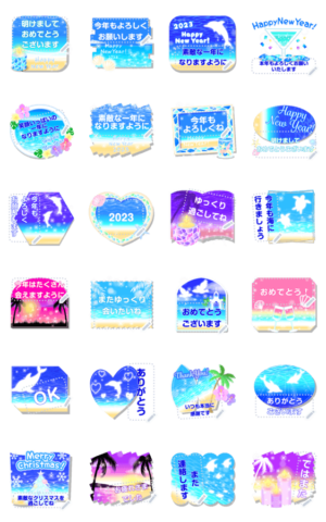 好きな文章に変えられるビーチリゾートのお正月年賀状メッセージスタンプです。キラキラときれいな海のスタンプです。海が好きな方良かったら使ってください♪※2023/1/3(火)23:59までに購入すると特典「LINEおみくじ」がもらえます。