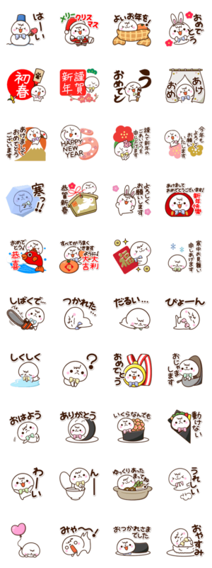 蝶ネクタイをした、ちいさくて可愛い『ちびコ』。しろくて、丸いチビキャラ。クリスマスや年末年始のかわいい年賀スタンプ。白くて、まるいキャラ好きな方にぜひ【かたこ】かたこ より発売