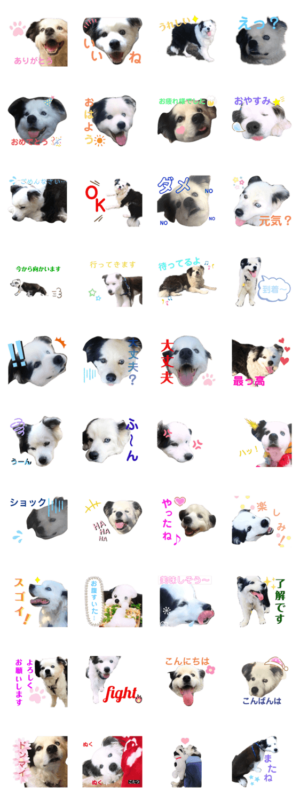 玄米菜食犬 ディオくんのスタンプです。可愛い真っ黒い目とクールなブルーアイ2つの魅力を持った自慢の子です。mayumi より発売