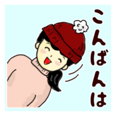 おばちゃんの寒い冬スタンプです。てんじくあおい より発売