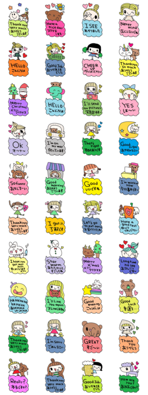 日本語英語韓国語タイ語中国語ございます。 ※このスタンプはトークルームで大きく表示されるBIGスタンプです。nenerin より発売