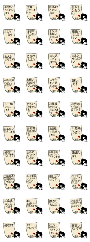 敬語スタンプ 承知いたしました おまかせください おめでとうございます 感謝しています ごきげんよう 帰ります ご無沙汰いたしております ミステリアスなスタンプ