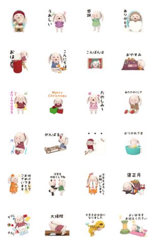 ウサギタオルのご挨拶スタンプです。季節限定のものだけでは無いので、汎用性はかなり高いですよ
