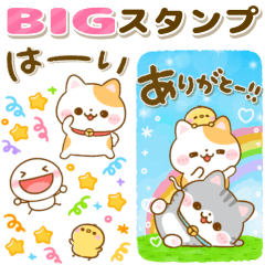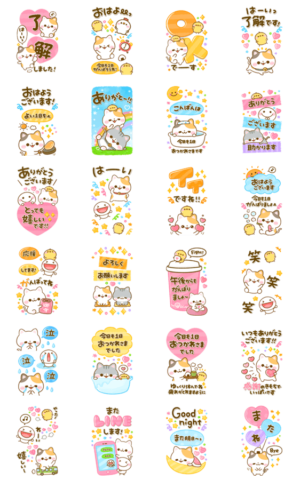 いろんなにゃんこが気持ちを伝える♡毎日使える言葉から相手を思いやる言葉までいろいろと入ったBIGスタンプセットです♡ ※このスタンプはトークルームで大きく表示されるBIGスタンプです。ぴよたぬき より発売