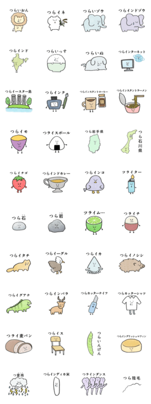 つらいときに使えるスタンプです。つらい/辛い/ツラい/悲しい/ゆるダジャレワタシはタワシ より発売