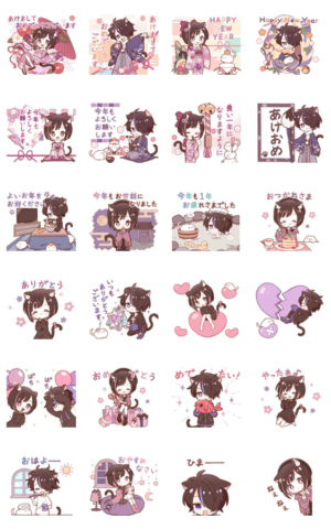 飛び出す!くろねこ女子&男子お正月スタンプのダウンロードはこちら↓