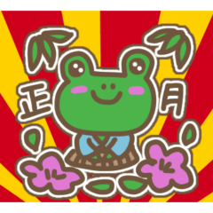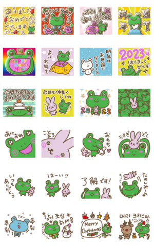 カエルのケロ作スタンプ、2023年お正月版。年末年始にケロ作がかわいくご挨拶。韓国語スタンプも入ってます。ケロ作 より発売