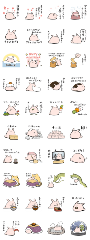 年末年始に使える兎年専用のスタンプでキャラがモチモチ柔らかそうに見えて好きです。