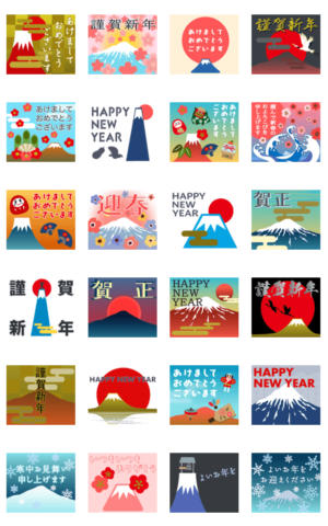 富士山だらけのポップアップスタンプです。年賀状がわりにぜひどうぞ!あけおめ。正月。年末年始。年賀状。※2023/1/3(火)23:59までに購入すると特典「LINEおみくじ」がもらえます。noriru より発売