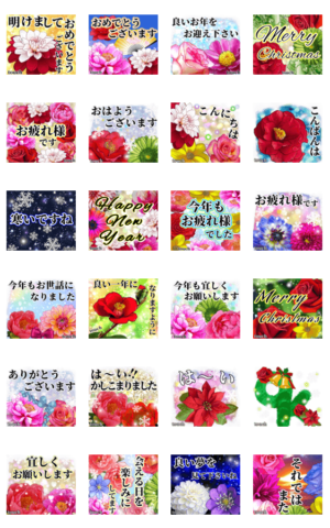❤️年末年始大きく飛び出すキラキラなお花 スタンプ画像一覧
