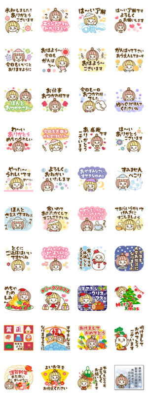 もらってうれしい冬の日常 体調 お正月(あけましておめでとう 今年もよろしく)クリスマス等!冬に便利なスタンプがいっぱいな 大人かわいい女の子7 スタンプ❤作:usakazu1