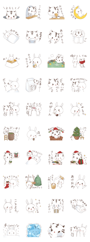 ホワイトタイガーとシロウサギの冬 スタンプ画像一覧