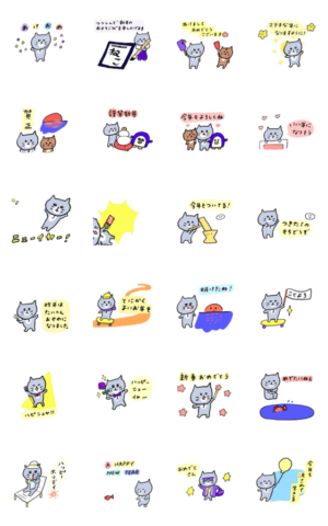 【再販】ゆるく動く灰色キャットのお正月 スタンプ画像一覧