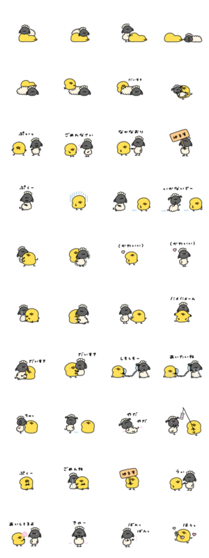 へんてこなヒヨコとひつじカップルスタンプがでました☺︎bocunoe より発売