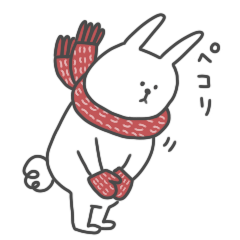 ゆるーい うさぎのイラストのスタンプです。冬に使える言葉がたくさんです。nonko より発売