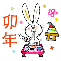 亜土ちゃんの卯年お正月スタンプが登場だよ♪お世話になった方へのご挨拶や新年のはじまりにぴったりのスタンプです。かわいいウサギがたくさん!ネオス株式会社 より発売