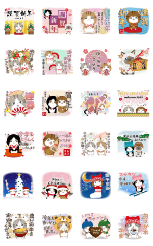 ちびニャンずの飛び出すあけおめスタンプ♪クリスマス/年末年始/気遣い/干支/敬語/お正月※2023/1/3(火)23:59までに購入すると特典「LINEおみくじ」がもらえます。