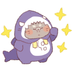 サメの着ぐるみを着た、にゃんこのスタンプです。かまってほしい時などにオススメです!駄菓子屋 より発売