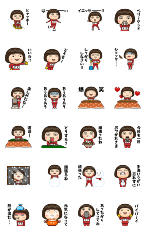 ママ(まま)が使う芋ジャージスタンプ第27弾『冬編』。スケート、ソリ、雪だるま、コタツなど冬に使えるスタンプです。くーが より発売