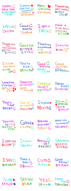 シンプルな日常会話スタンプです。日本語&英語スタンプ
