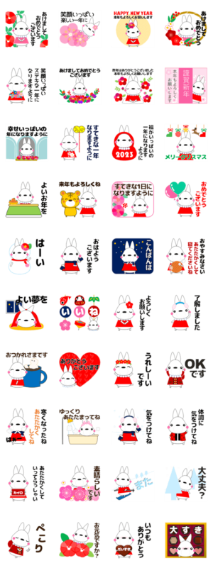 大人の気遣い おしゃれウサギ 冬 年末年始 スタンプ画像一覧
