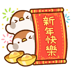 人気クリエイター・とっとの旧正月・春節向けスタンプ。ふんわりスズメが新年をお祝い♪よく使う挨拶や返答も揃った中国語(繁体字・台湾華語)スタンプです