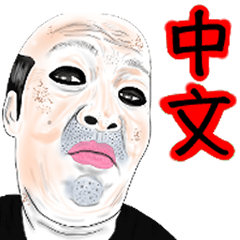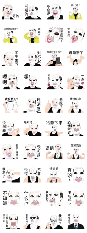 パンダメイクをした楽天的なおっさんのスタンプです。中国版。 気の合う相手との日常会話に是非お使い下さい。エムハゲ より発売
