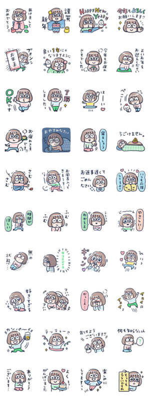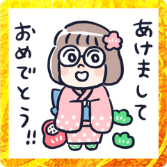 おかっぱめがねの年末年始スタンプ2023バージョンです。 小さめでころころ可愛い絵にしました。 おかっぱめがねのお友達、姉妹、お母さんへのプレゼントにもオススメ♪※2023/1/3(火)23:59までに購入すると特典「LINEおみくじ」がもらえます。くもやあきこ より発売