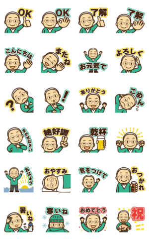 毎日使える!シニア男性スタンプ(緑) スタンプ情報