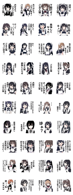 愛するご主人様に辛辣な言葉を投げかける毒舌・辛口なメイドさんのスタンプです。家政婦/執事/喫茶/萌え/キュン/コンカフェ/コスプレ/レイヤー/オタク/敬語/ディスる/ヲタAIとクリエイト より発売