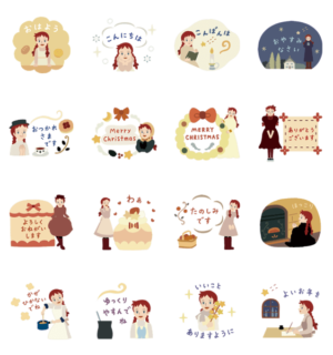 dinadinaデザイン「赤毛のアン」冬バージョンです。「メリークリスマス」や、「良いお年を」など、年末年始に大活躍のアンのスタンプで、気持ちを伝えてみませんか?