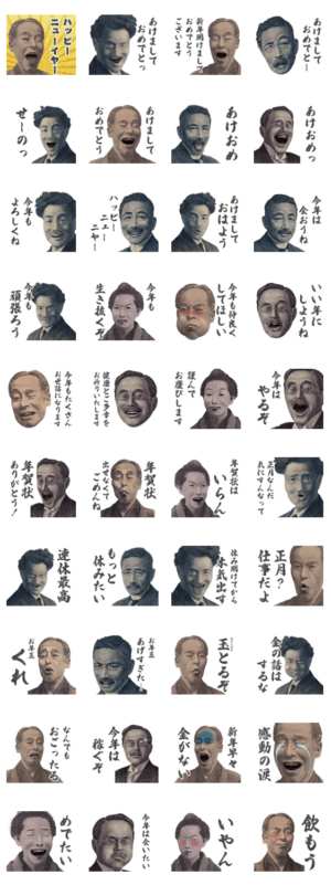 偉人たちの正月スタンプのダウンロードはこちら↓