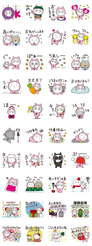 うさぎのキャラクターの、季節モノのスタンプ。カワイイ系というよりは日常系という塩梅の雰囲気で、全体的に通年使える汎用性の高いメッセージが多い。