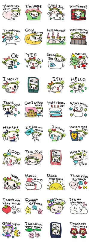 シンプルな日常会話スタンプです。英語スタンプnenerin より発売