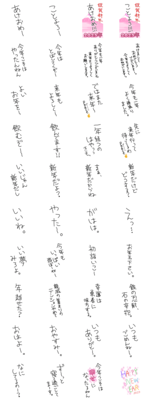 【BIGスタンプ】家族、友達、恋人、全ての人に使える手描き風スタンプです。【年末年始/新年/お正月/面白い/年賀状/大晦日/お年玉/クリスマス/冬/あけおめ/大人/お年玉】※2023/1/3(火)23:59までに購入すると特典「LINEおみくじ」がもらえます。Yoroniku より発売